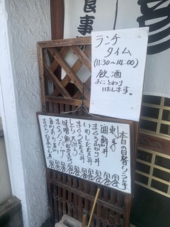 通常メニューは見開きの物が各テーブルに置いてあるのですが、ランチメニューはこんな感じでお店の入口前に出されています。